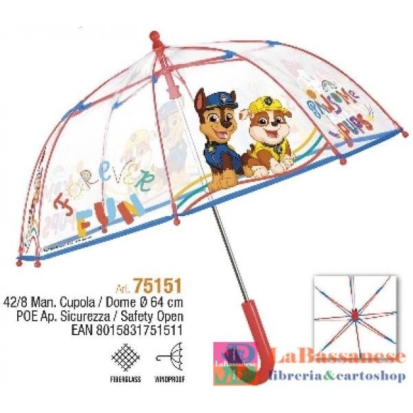 OMBRELLO MANUALE 42 CM CUPOLA POE, PAW PATROL - 75151
